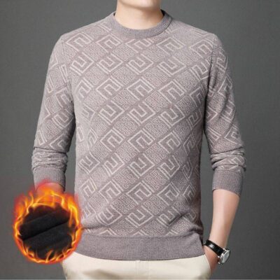 Áo len nam mùa thu đông Plus nhung dày lót ấm áp có đáy áo len dệt kim phối hợp thời trang