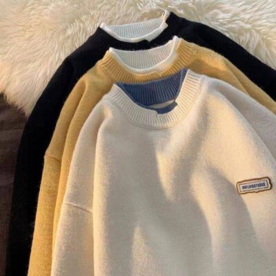 Mùa đông áo len phong cách Hồng Kông nam sinh viên phiên bản Hàn Quốc rộng rãi đẹp trai hợp thời trang áo len dệt kim đáy dày áo chui đầu cổ tròn