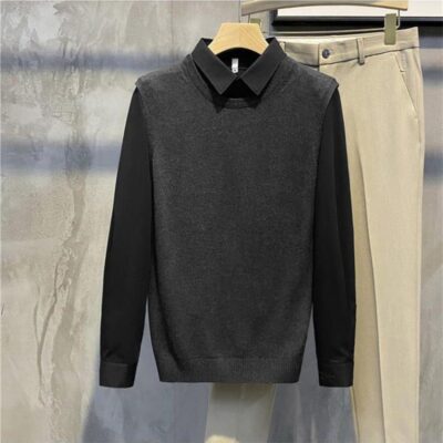 Áo khoác giả hai mảnh áo len nam 2023 mới xu hướng đẹp trai xu hướng đáy ve áo dài tay mặc áo len mỏng vừa vặn