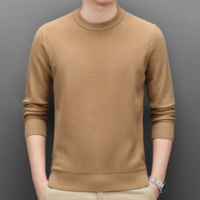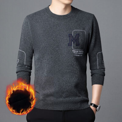 Áo len dệt kim nhung nam dệt kim dày ấm đáy áo sơ mi mùa đông mới áo len nam cổ tròn