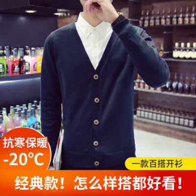 Áo len cardigan nam mùa xuân và mùa thu áo len dệt kim dài tay màu học sinh v phiên bản Hàn Quốc áo khoác mỏng trẻ trung hợp thời trang