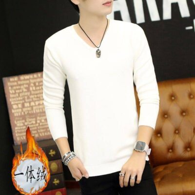 Áo len nam thu đông cổ chữ V mỏng phiên bản Hàn Quốc áo len mỏng đáy mỏng màu trắng học sinh cộng với áo len cổ tròn nhung