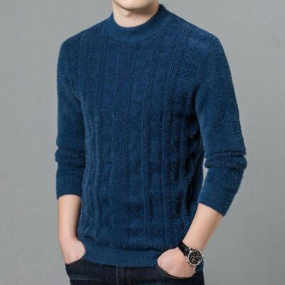Áo Len Nam Plus Nhung Mùa Đông Cao Cấp Dày 2022 Mới Cổ Tròn Đáy Chồn Nhung Thời Trang Áo Len Dệt Kim