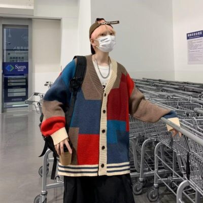 Áo len hai mảnh giả nam mùa thu đông phiên bản Hàn Quốc theo xu hướng phong cách Hồng Kông áo khoác len cặp đôi cổ tròn dáng rộng lười biếng
