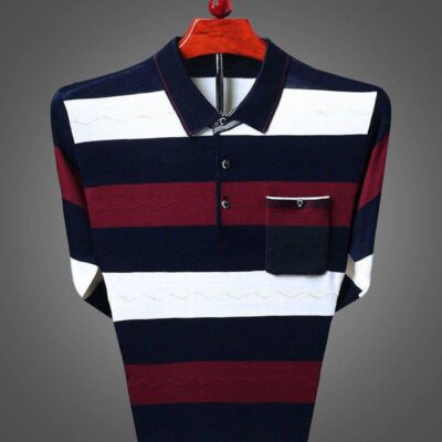 Áo len dệt kim dài tay mùa thu áo sơ mi nam có ve áo của người cha trung niên rộng rãi quần áo mùa thu giản dị có đáy áo sơ mi nam quần áo trung niên và người cao tuổi