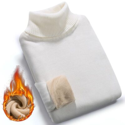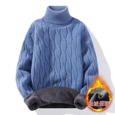 Thanh niên áo len cao cổ nam lông cừu dày dệt kim học sinh trung học cơ sở mùa đông có lót lông cừu ấm áo sơ mi