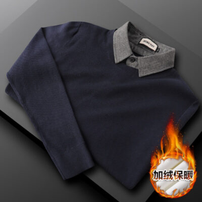 Quần áo nam dày vừa vặn áo len nhung lông chồn ấm áp nam trung niên và thanh niên áo len nửa cổ lọ có đáy áo sơ mi