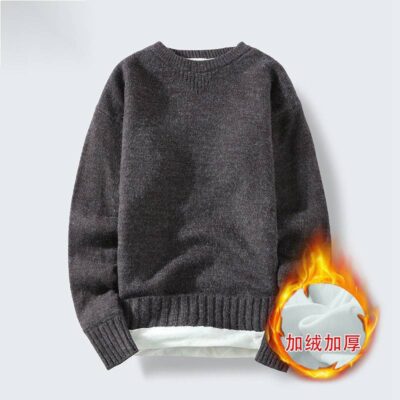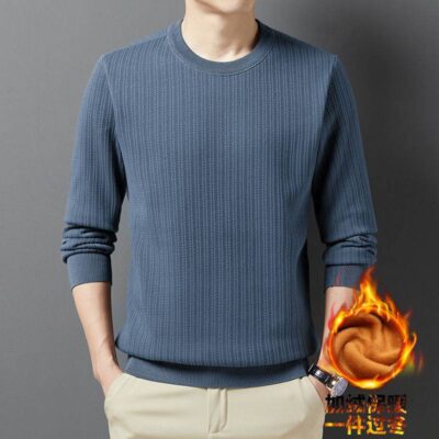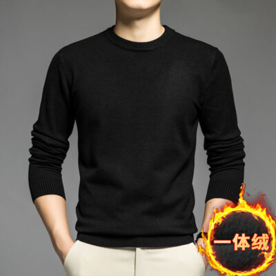 Áo len cổ tròn nam màu trơn mùa thu đông ấm áp một lớp nhung dày cộng nhung lót bên trong áo sơ mi lót áo len dệt kim áo len