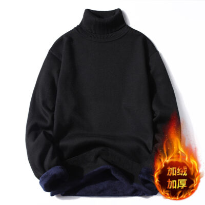 Áo len lông cừu chồn áo len nam màu trơn cộng với nhung dày mùa đông mới nửa áo len cao cổ áo len nam xu hướng giản dị