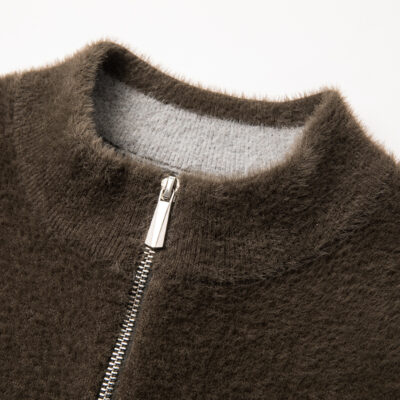 Áo len nam Cardigan giả nhung chồn Áo len nam mùa thu đông trẻ trung Áo khoác cổ đứng Jacquard dày cho nam Quần áo nam