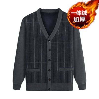 Áo len Cardigan bố Áo dệt kim nam Quần áo nam trung niên và cao tuổi Quần áo ông ngoại Áo khoác ngoại cỡ dày và lông cừu Quần áo thu đông