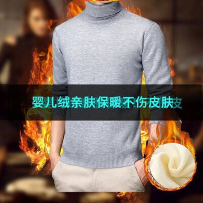 Mùa đông nhung chồn cao cấp dày ấm áo len nam nửa cổ cao sang trọng áo len rời thanh niên mặc bên trong áo len dệt kim