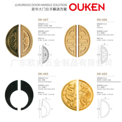 Quảng Đông Ouken Phần cứng Trung Quốc Tay nắm cửa kính cổ hình bán nguyệt Xiangyun Tay nắm cửa bằng đồng khắc rỗng