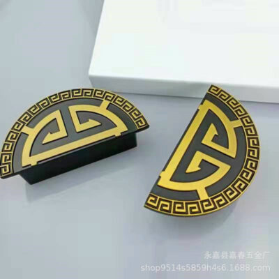 Tay nắm cửa cao cấp tấm hợp kim nhôm khắc titan sang trọng tay nắm hình bán nguyệt trang trí hoa văn tùy chọn