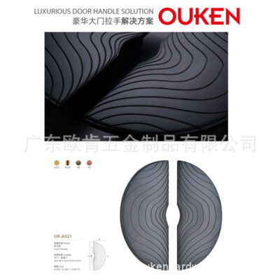 Quảng Đông Ouken Phần cứng Mới Hình bán nguyệt cổ điển Trung Quốc Tay đánh Kết cấu Tay nắm cửa bằng đồng đen mờ