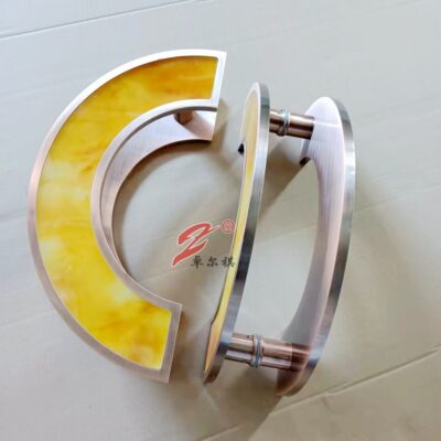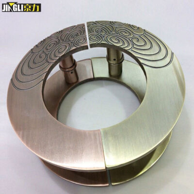 Lên đồ lấy mẫu tay nắm inox đồng đỏ hình bán nguyệt kính nghệ thuật tay nắm cửa khách sạn tay vịn cửa khách sạn