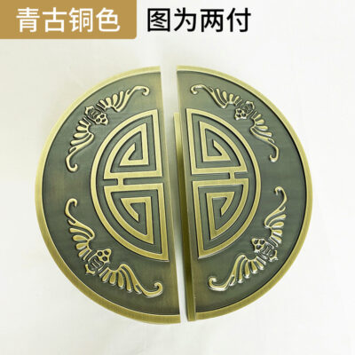 Tay nắm cửa hình bán nguyệt bằng đồng cổ mới của Trung Quốc chạm khắc thủ công tay nắm cửa bằng đồng kính cửa tay nắm cửa bằng gỗ