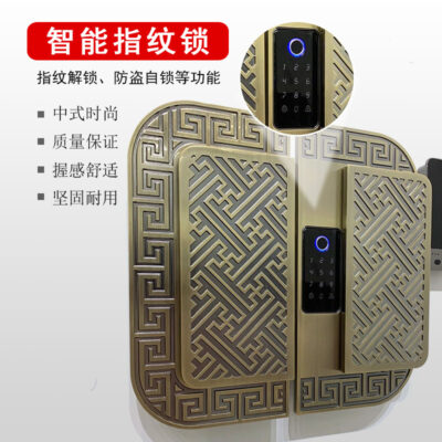 Tay nắm cửa kiểu Trung Quốc Tay nắm cửa bằng đồng hình bán nguyệt trượt kéo đẩy với khóa mã thông minh vân tay