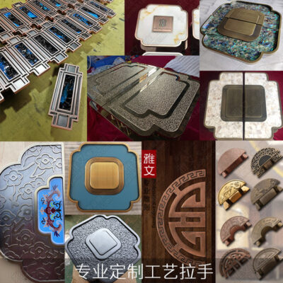 Quảng Đông Okun Hardware Boutique Đồng thau chạm khắc Kết cấu hình bán nguyệt Đánh bại Phong cách Trung Quốc Tay cầm lớn khảm
