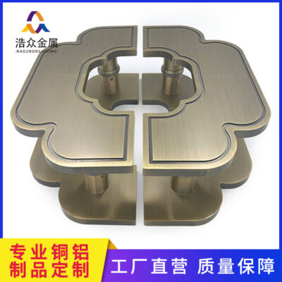 Mới kiểu Trung Quốc cổ hình bán nguyệt tay cầm bằng đồng tấm nhôm dát cửa kính khách sạn tay nắm cửa gỗ tay vịn chạm khắc