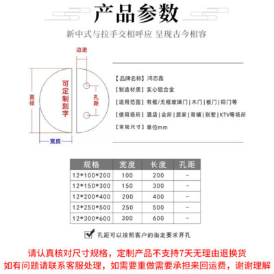 Mới phong cách Trung Quốc hợp kim nhôm tay nắm cửa bằng gỗ chắc chắn hình bán nguyệt khắc câu lạc bộ khách sạn cửa biệt thự cửa kính tay nắm