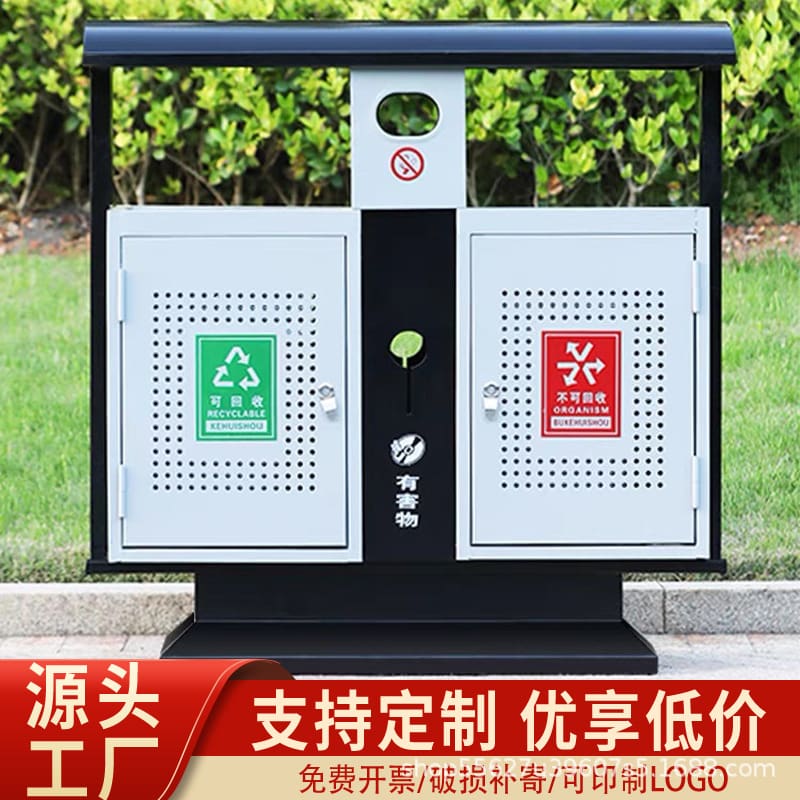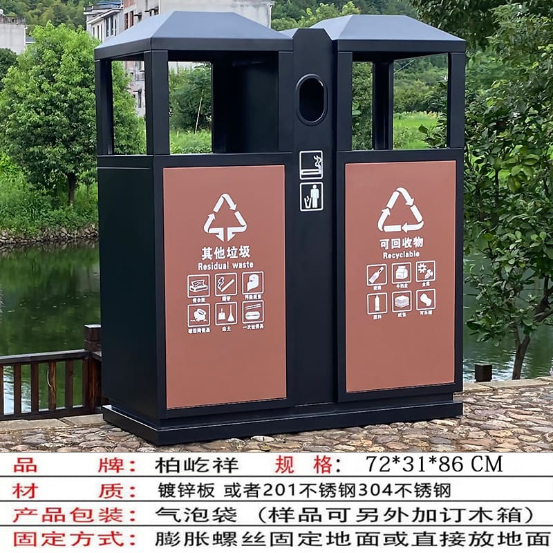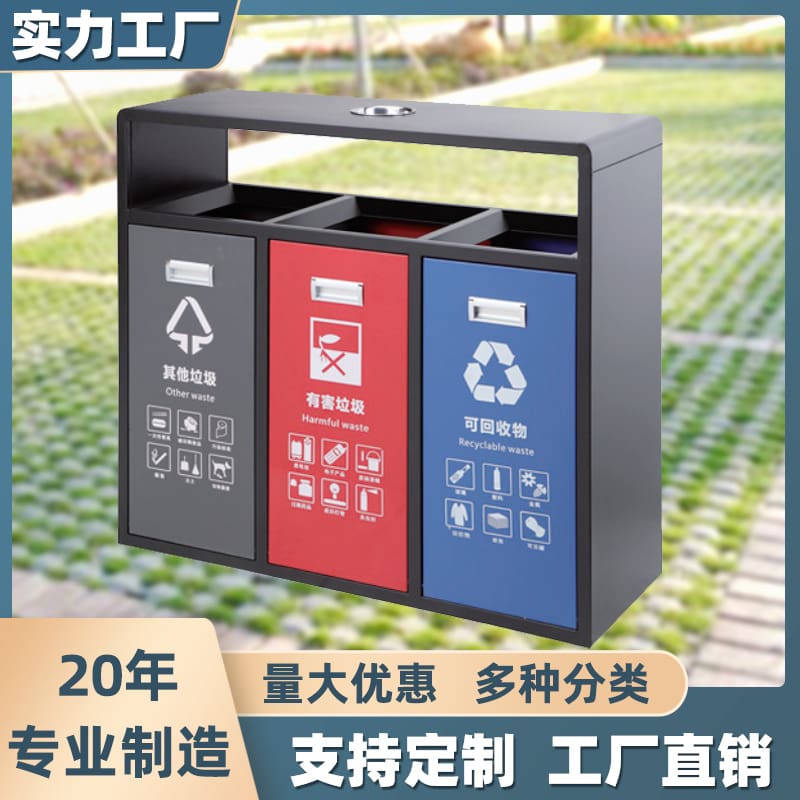 Thùng rác hai-ba-bốn phân loại thùng rác hộp thép không ngoài trời bền đẹp, t TGNT_88