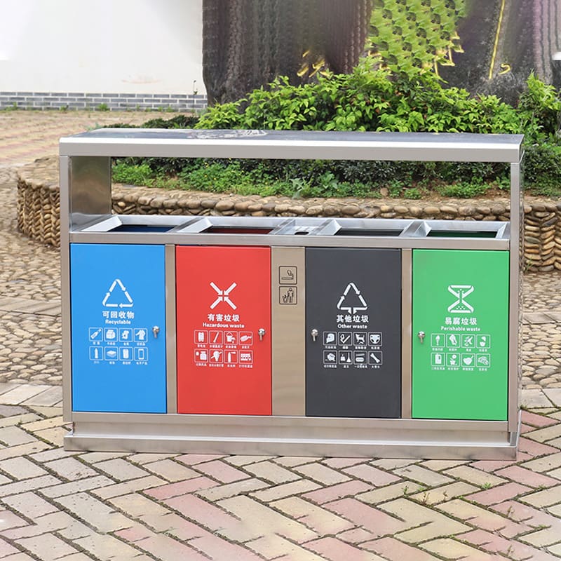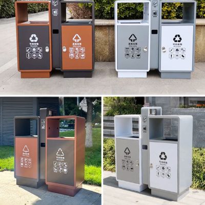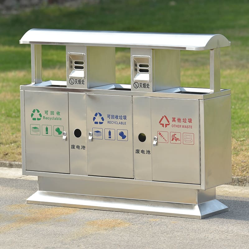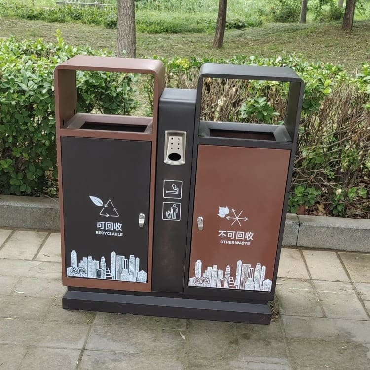 Thùng rác tấm mạ kẽm ngoài trời đa phân loại ngoài trời bền đẹp, thân thiện m TGNT_107