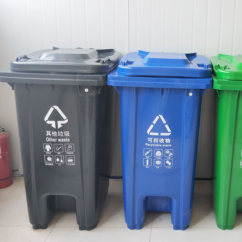 Thùng rác phân loại 240l có nắp, bàn đạp dày ngoài trời bền đẹp, thân thiện m TGNT_1471