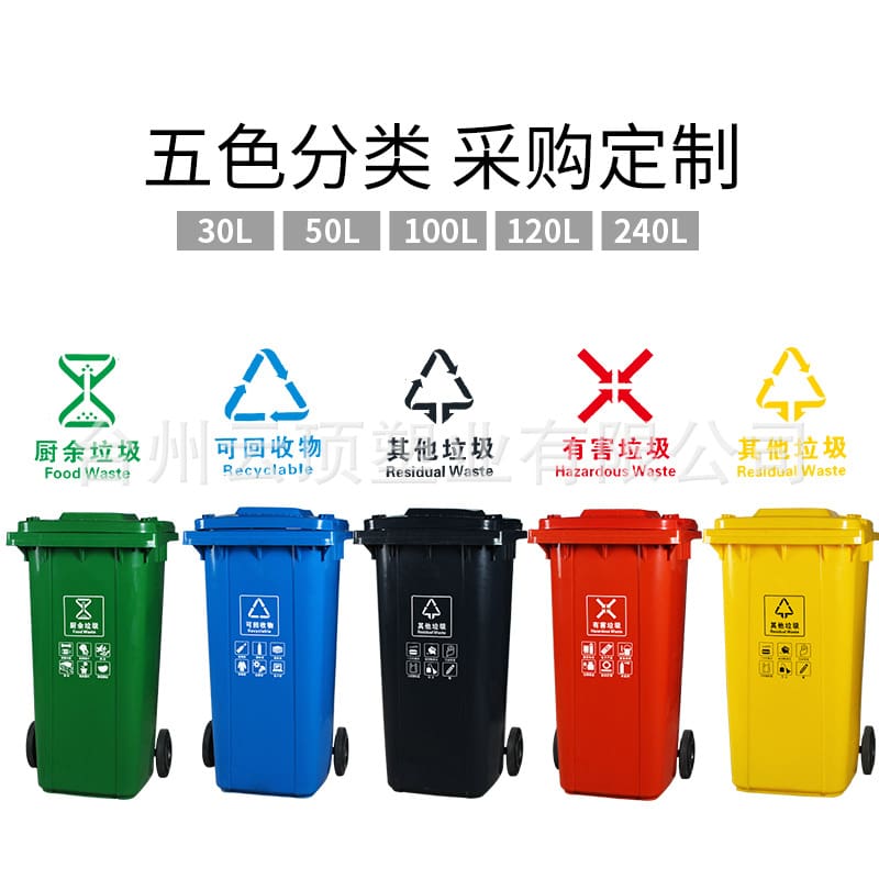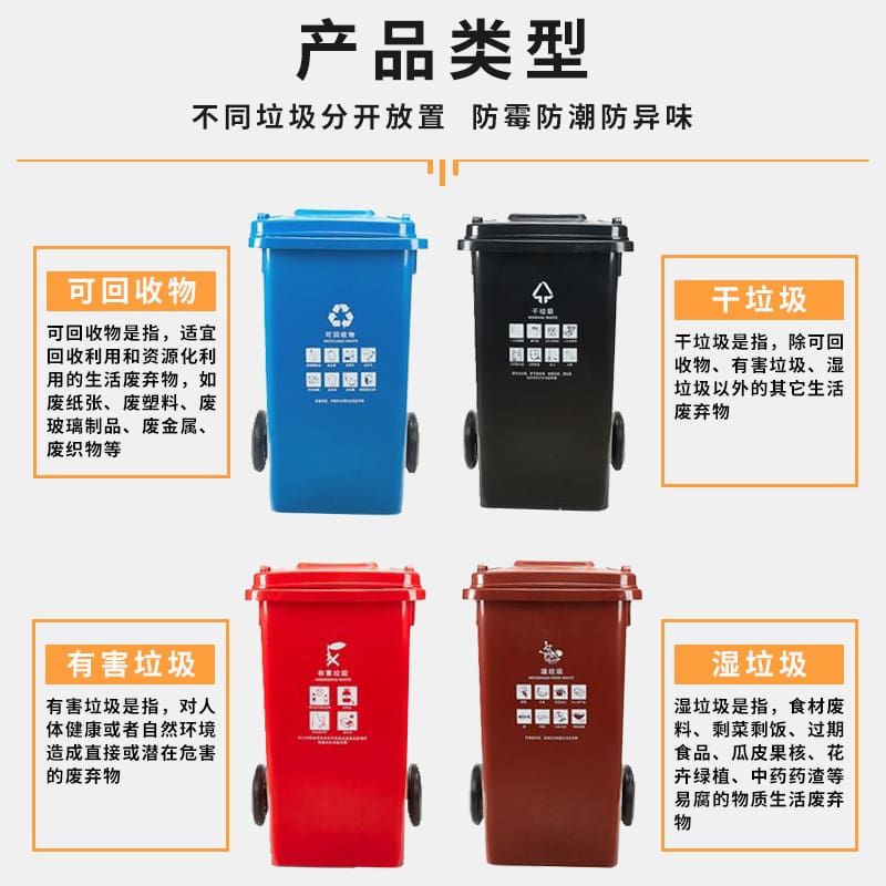 Thùng rác bốn loại bằng nhựa thượng hải 240l trường ngoài trời bền đẹp, thân TGNT_558