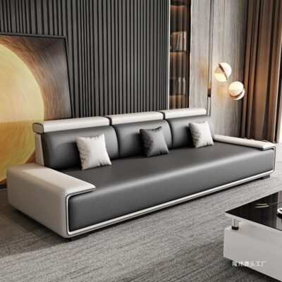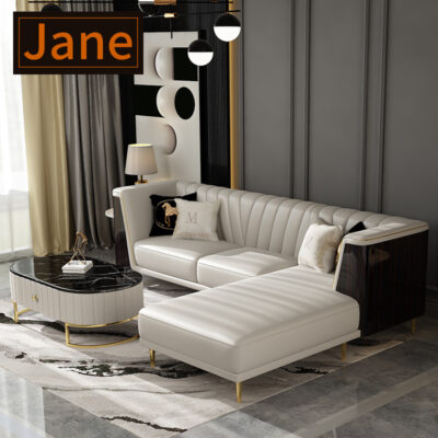 Sofa góc sang trọng nhẹ nhàng da thật Vương phi đơn giản hậu hiện đại căn hộ nhỏ da nghệ thuật Sofa gỗ đàn hương đen bốn chỗ thẳng hàng