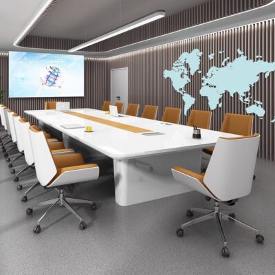 Bàn hội nghị sơn bàn dài đơn giản hiện đại màu trắng phòng họp đàm phán bàn ghế kết hợp nội thất văn phòng 6-20 người