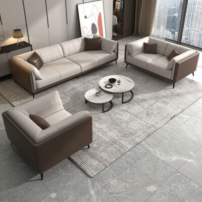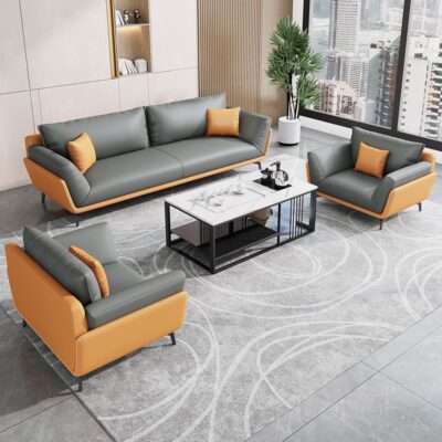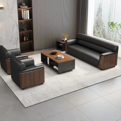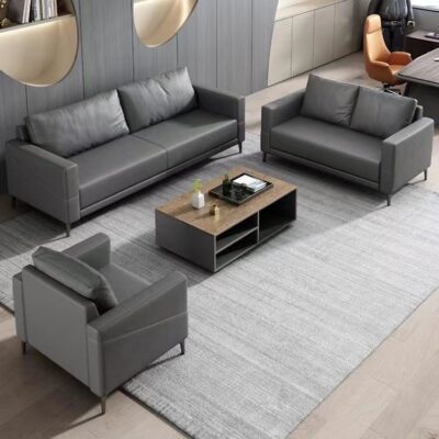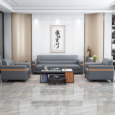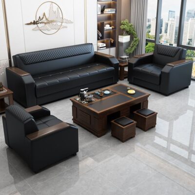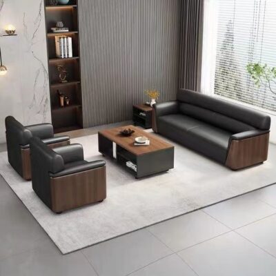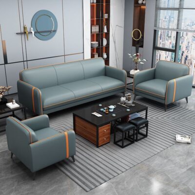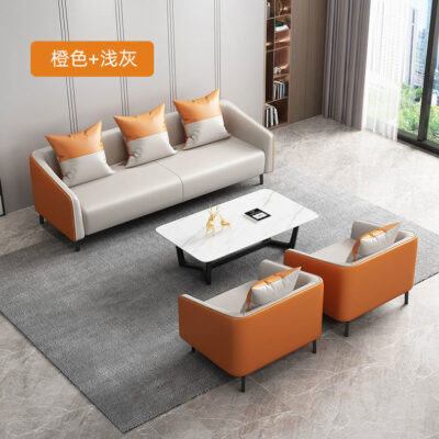 Sofa văn phòng bàn cà phê kết hợp quầy lễ tân kinh doanh hiện đại đơn giản tiếp tân căn hộ nhỏ sofa da văn phòng ba người