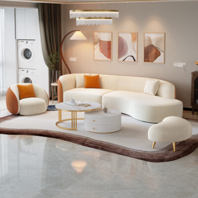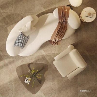 Sofa phòng khách Đẹp hiện đại căn hộ nhỏ sang trọng Phổ biến trên Internet cong hình đặc biệt công nghệ sherpa sofa vải bàn cà phê kết hợp
