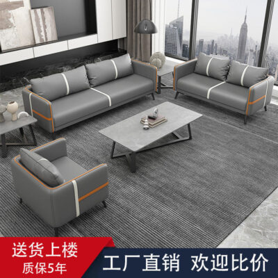 Sofa văn phòng đơn giản ba chỗ ngồi hiện đại đàm phán tiếp tân kinh doanh tiếp tân da nghệ thuật sofa văn phòng bộ bàn cà phê