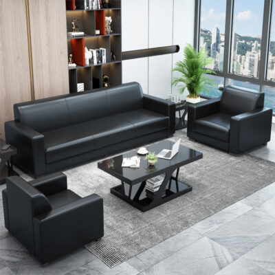 Sofa văn phòng da nghệ thuật bàn cà phê kết hợp đơn giản hiện đại tiếp tân kinh doanh Sofa văn phòng nhỏ ba người