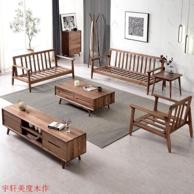 Sofa Bắc Âu màu đen hiện đại gỗ nguyên khối Da Bắc Mỹ đầy đủ phòng khách quả óc chó Ý Sofa căn hộ nhỏ kết hợp đơn giản