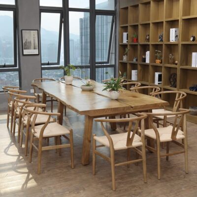 Bàn hội nghị gỗ nguyên khối Bắc Âu, bàn ghế đào tạo nhân viên văn phòng lớn, bàn dài đàm phán kinh doanh