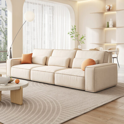 Màu kem phong cách đậu phụ khối sofa phòng khách căn hộ nhỏ thẳng móng vuốt mèo vải lưng cao sofa vuông tối giản Ý