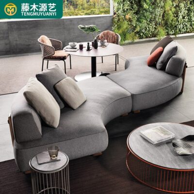 Fujiki Yuanyi Bắc Âu gỗ rắn sofa vải sân khách sạn ngoài trời sáng tạo chống nắng kết hợp sofa ngoài trời chống thấm nước